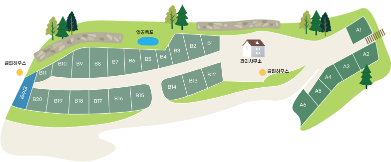 ※ 예약 시 참고사항 : B-1, B-11 캠핑카 사용 시 사이트 크기 확인 후 예약 바랍니다.