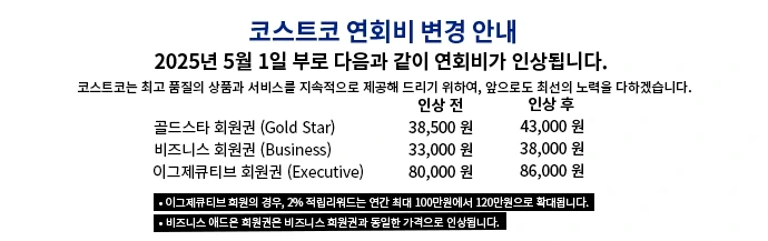 현재 코스트코가 2025년 5월1일 자정부터 연회비가 인상될 예정입니다 기존회원분만 아니라 신규회원도 인상전 가입하면 할인된 가격으로 멤버십을 유지할 수 있는 기회가 있습니다